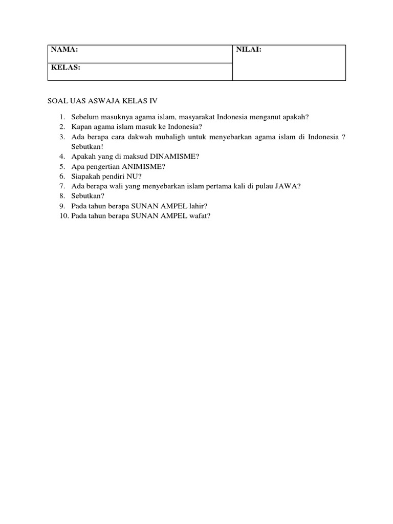 Contoh Soal Aswaja Dan Jawabannya Cara Golden from demo.dokumen.tips Penggunaan tanda baca yang tepat adalah. Rpp ke nu an kelas 4 mi semester 1 dan 2 mi zumrotul wildan. Bahasa indonesia dan ipa bahasa indonesia kd 37 teks untuk soal nomor 1 sampai 3. Soal uts aswaja kelas 5 dan kunci.soal pilihan ganda aswaja dan ke soal aswaja kelas 5 docx soal uts genap aswaja 7 1213. March 5, 2021 by abdillah alhasni. 31 junuari 1826 m d. Raden mas wahab hadiningrat mata. Soal uas tematik kelas 4 tema 4 semester 1 tahun 2020/2021.